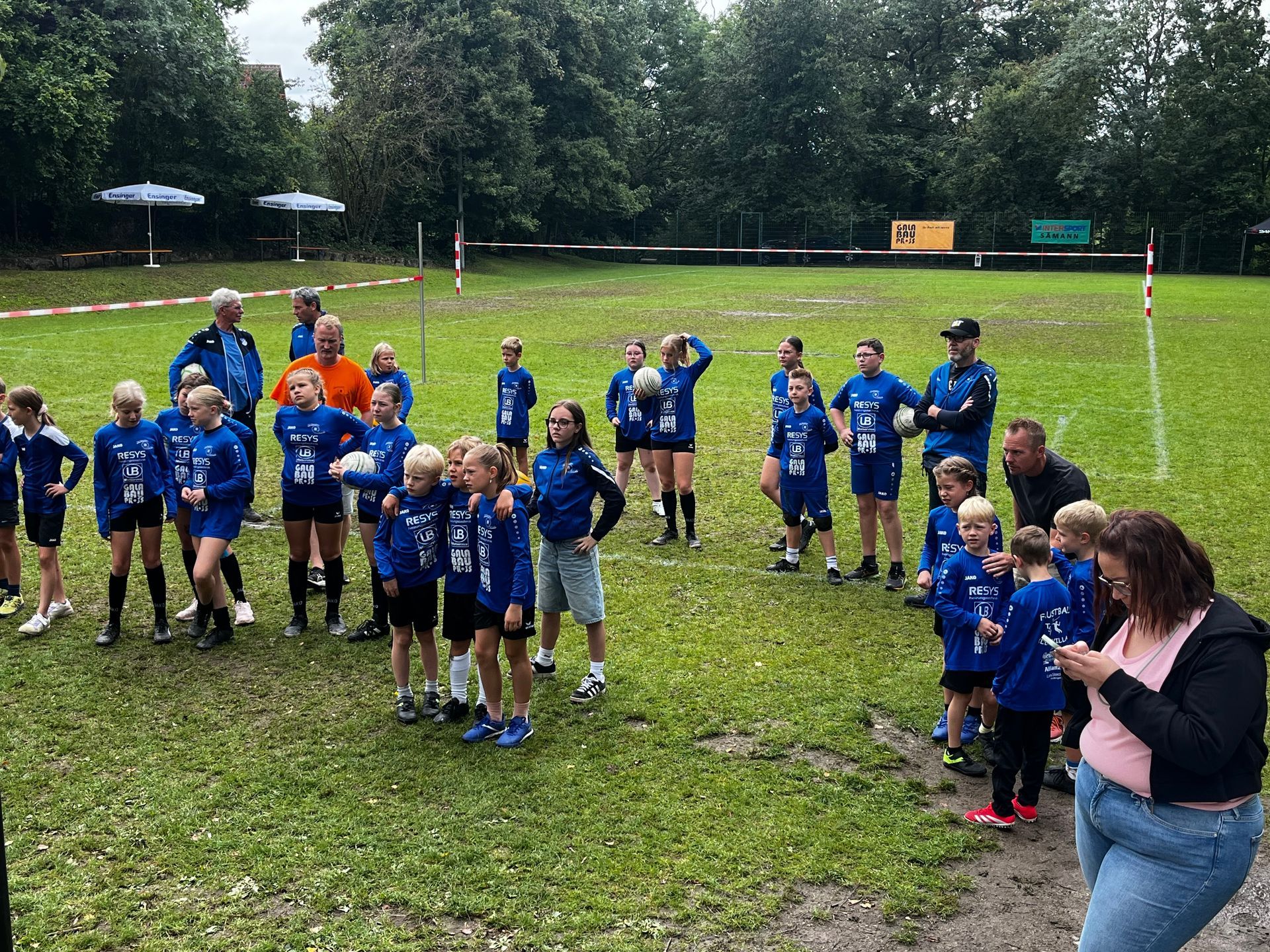 Im Anschluss wurde das Gerümpelturnier ausgetragen – ein offenes Laienturnier für Freizeit- und Hobbyspieler:innen. Besonders erfreulich war die Teilnahme vieler Neulinge, die erste Erfahrungen im Faustball sammeln konnten. Das Team LaFamilia setzte sich im Teilnehmerfeld durch.