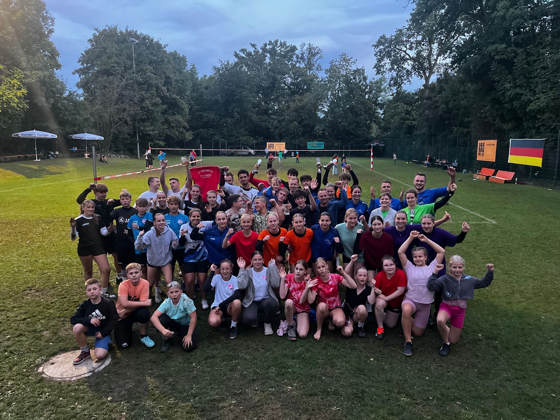 Ein sportlich und gemeinschaftlich intensives Wochenende liegt hinter der weiblichen U14 des TSV Kleinvillars. Mit insgesamt 11 Kindern und 9 Erwachsenen – bestehend aus Trainer:innen, Betreuer:innen und mitgereisten Eltern – machte sich die Reisegruppe am Freitag auf den Weg zur Süddeutschen Meisterschaft nach Hallerstein. Übernachtet wurde gemeinsam in einer Unterkunft in Hof, bevor es am Sonntag wieder zurück nach Kleinvillars ging. In der Gruppenphase traf der TSV Kleinvillars auf starke Gegnerinnen. Im Auftaktspiel unterlag man dem späteren Finalisten TV Unterhaugstett mit 0:2 (6:11, 9:11), zeigte dabei aber insbesondere im zweiten Satz eine kämpferisch starke Leistung. Gegen den TV Herrnwahlthann erkämpfte sich das Team ein verdientes 1:1-Unentschieden (9:11, 12:10), ehe es im letzten Gruppenspiel gegen Gastgeber TV Hallerstein eine 0:2-Niederlage (3:11, 7:11) setzte. Mit einem Unentschieden und zwei Niederlagen belegte der TSV Kleinvillars in Gruppe B den vierten Platz. In der Gesamtwertung bedeutete das den geteilten 7. Platz bei der Süddeutschen Meisterschaft – ein achtbares Ergebnis in einem stark besetzten Teilnehmerfeld. Süddeutscher Meister wurde der TV Stammheim, der sich im Finale gegen den TV Unterhaugstett durchsetzen konnte. Für Kleinvillars spielten: Lea, Georgia, Jana, Maxi, Mayla, Carla, Mia, Fiona, Letizia und Mara. Mit dem Turnierwochenende endet für die Mannschaft auch die Feldrunde 2025. Nach einer intensiven Saison mit vielen Turnieren, Trainingseinheiten und Highlights geht es nun in eine kurze Sommerpause. Im Herbst startet das Team dann in neuer Konstellation in die Hallenrunde – mit frischem Schwung und vielen gesammelten Erfahrungen im Gepäck.