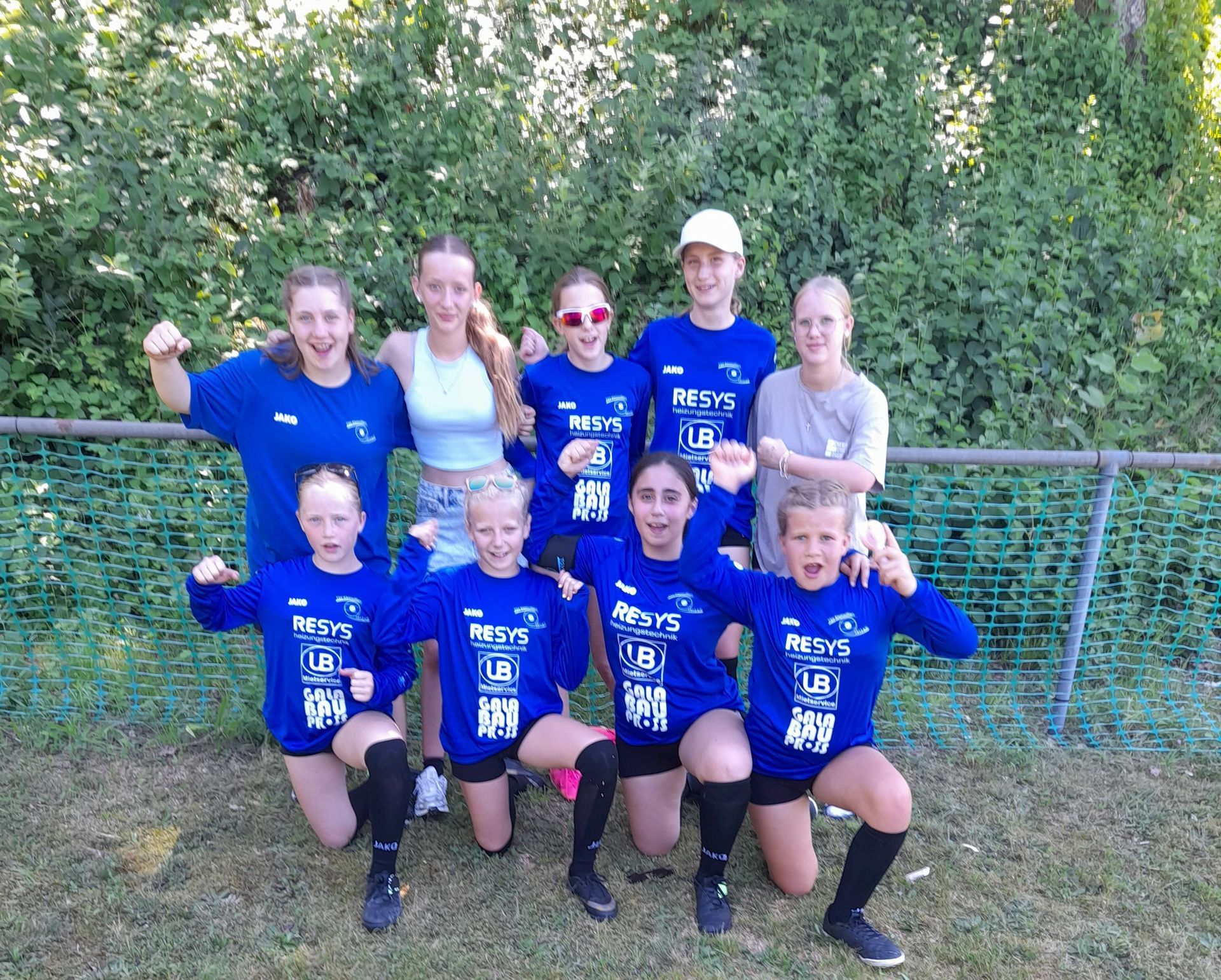 Ein sportlich und gemeinschaftlich intensives Wochenende liegt hinter der weiblichen U14 des TSV Kleinvillars. Mit insgesamt 11 Kindern und 9 Erwachsenen – bestehend aus Trainer:innen, Betreuer:innen und mitgereisten Eltern – machte sich die Reisegruppe am Freitag auf den Weg zur Süddeutschen Meisterschaft nach Hallerstein. Übernachtet wurde gemeinsam in einer Unterkunft in Hof, bevor es am Sonntag wieder zurück nach Kleinvillars ging. In der Gruppenphase traf der TSV Kleinvillars auf starke Gegnerinnen. Im Auftaktspiel unterlag man dem späteren Finalisten TV Unterhaugstett mit 0:2 (6:11, 9:11), zeigte dabei aber insbesondere im zweiten Satz eine kämpferisch starke Leistung. Gegen den TV Herrnwahlthann erkämpfte sich das Team ein verdientes 1:1-Unentschieden (9:11, 12:10), ehe es im letzten Gruppenspiel gegen Gastgeber TV Hallerstein eine 0:2-Niederlage (3:11, 7:11) setzte. Mit einem Unentschieden und zwei Niederlagen belegte der TSV Kleinvillars in Gruppe B den vierten Platz. In der Gesamtwertung bedeutete das den geteilten 7. Platz bei der Süddeutschen Meisterschaft – ein achtbares Ergebnis in einem stark besetzten Teilnehmerfeld. Süddeutscher Meister wurde der TV Stammheim, der sich im Finale gegen den TV Unterhaugstett durchsetzen konnte. Für Kleinvillars spielten: Lea, Georgia, Jana, Maxi, Mayla, Carla, Mia, Fiona, Letizia und Mara. Mit dem Turnierwochenende endet für die Mannschaft auch die Feldrunde 2025. Nach einer intensiven Saison mit vielen Turnieren, Trainingseinheiten und Highlights geht es nun in eine kurze Sommerpause. Im Herbst startet das Team dann in neuer Konstellation in die Hallenrunde – mit frischem Schwung und vielen gesammelten Erfahrungen im Gepäck.